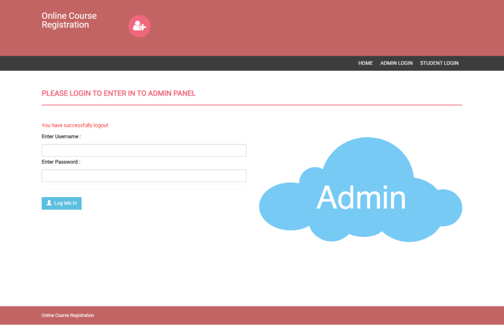 Student can log in with valid reg no and password provided by admin. Student can enroll for any course and can printout of the registered course.